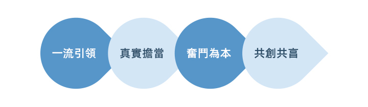 價值觀:一流引領、真實擔當、奮鬥為本、共創共亯